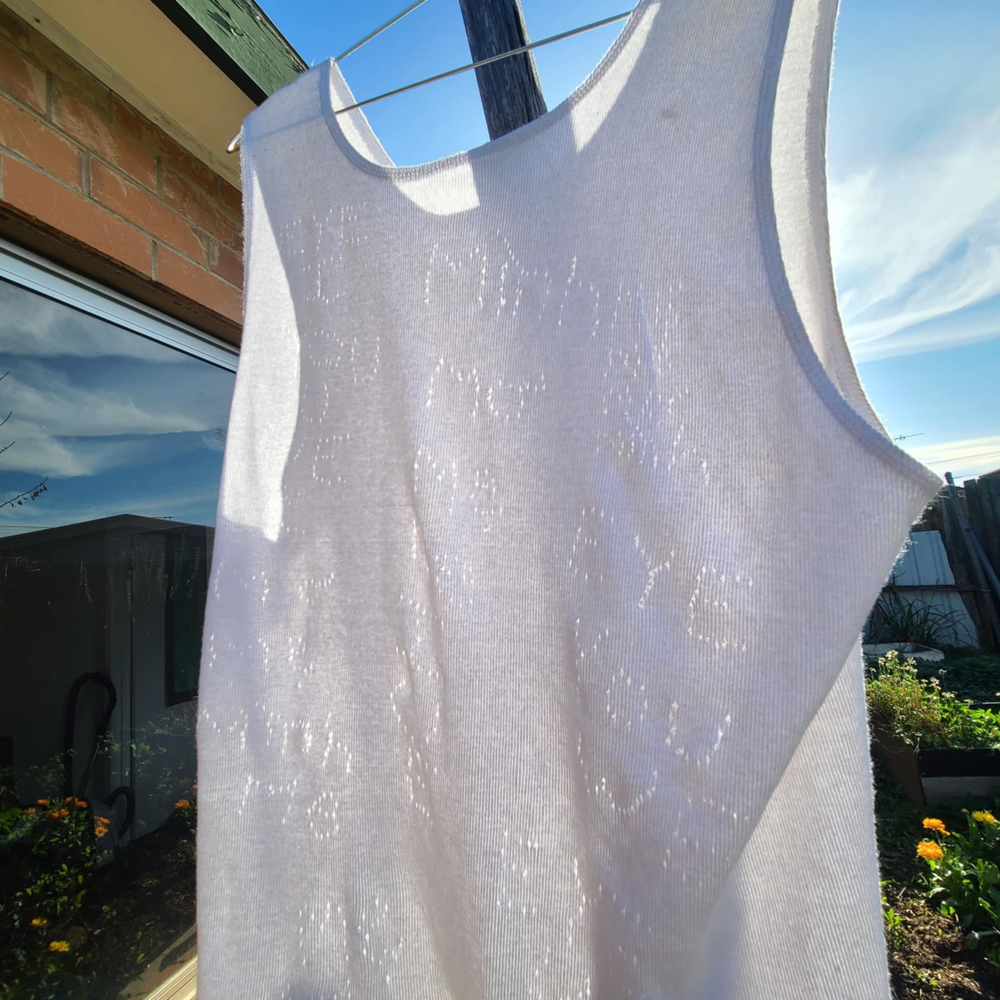 I’ve been researching and exploring transgender, queer and lesbian typographies through living (embodied) and printed archives. Leaping from my own experience I’ve drawn upon textiles in Vietnamese history, queer fashion, transgender and lesbian codes to dig into/look through/puncture and expand relationality between body and community. Below you’ll find some of the prototypes during my Masters in Communication Design at RMIT. Thanks to Fayen D’Evie for her teaching and guidance. These first prototypes were made during her experimental typography class. More to come soon.